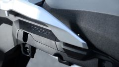 SANA E ROBOSTA COSTITUZIONE Altri segni particolari sono il serbatoio, snello ma con una dignitosissima capacità di 20 litri, e le modanature in alluminio che rivestono parte del ponte di comando. Queste ultime danno l’idea di una notevole cura nelle finiture, che trova poi conferma quando ci si arma di lente d’ingrandimento e si va a vedere come sono fatti i vari componenti. Ok, gli elementi in plastica grezza abbondano ma tutto sembra di sana e robusta costituzione, come pure la luce posteriore a Led. Stesso discorso per la strumentazione, con un contagiri analogico integrato da un display che fornisce tutte le informazioni che si possono desiderare, compresi i consumi medio e istantaneo, la temperatura ambiente e l’autonomia residua. Poco più sotto è presente anche una utile presa 12V.
