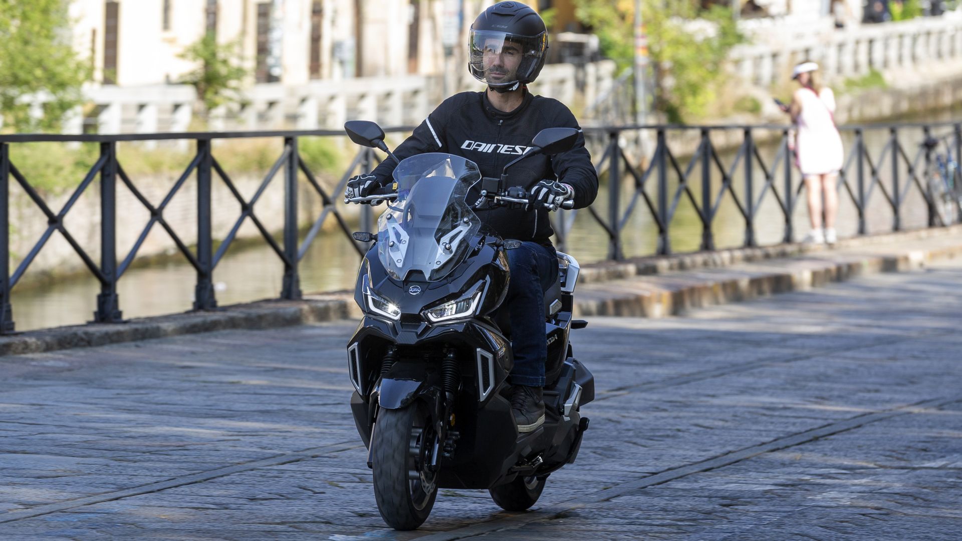 Il look è sportivo, con una sorta di piccolo becco a richiamare il mondo adventure e un manubrio di stampo motociclistico, con la struttura tubolare lasciata a vista. Non si può dire si tratti di un design mai visto prima, certo, ma l'ADX è bello da vedere e fatto bene, con una buona qualità percepita tra verniciatura, blocchetti, strumentazione e finiture in generale. Proprio il display da 5'' a colori – vi anticipo – complice anche il deflottirno interno al plexi, si vede bene anche con la luce alta mentre si procede in strada. Niente male.