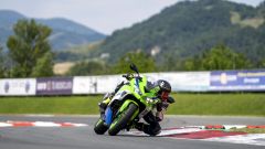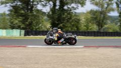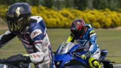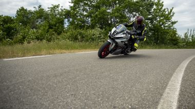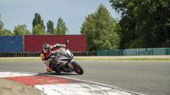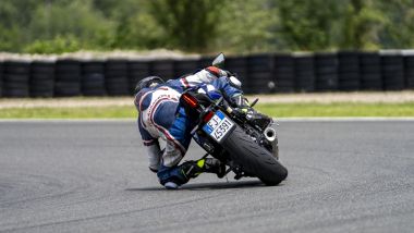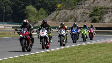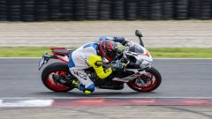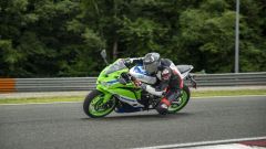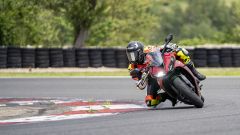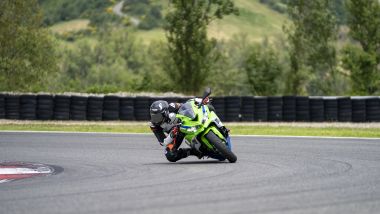 Tra i cordoli la Ninja ti educa a scorrere: per essere veloci è necessario non perdere velocità – e giri/min – tra le curve: una 600 in miniatura, con tutti i pro e i contro del caso. Esaltante col suo urlo al limitatore, la Kawasaki è molto piacevole da guidare tra i cordoli. Anche se la Ninja ZX-4RR è una delle moto del confronto più a suo agio in circuito, il suo ABS è comunque tarato stradale e non permette di frenare davvero forte. Anche le gomme, pur risultando buone, non sono all'altezza del potenziale della 400 tutto pepe se si decide di alzare il ritmo. Cambiando quelle e dando qualche click qua e là, però, la 4 cilindri è certamente tra le più preparate per i track days.