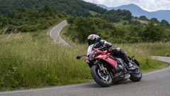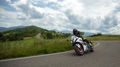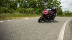 Il premio ''innovazione'' va certamente alla CBR650R E-Clutch, la frizione elettronica assistita. Grazie alla frizione ''automatica'' risulta comodissima nell'uso quotidiano – qui Michele vi racconta come funziona – perché ci si può letteralmente dimenticare della leva al manubrio e azionare solo il pedale del cambio. La CBR è comoda, con una posizione sportiva ma non troppo, la Honda è una moto che si presta all'uso a 360 gradi. Il 4 cilindri della 650 non è vuotissimo sotto, ha un po' di schiena, ma si porta dietro un po' di on/off e un comando con un po' di gioco. Ciononostante si guida molto bene, è una delle più pesanti e non è la più fulminea ma è rassicurante – come ti aspetti da una Honda – con una forcella che lavora bene e un mono che rimbalza un po'. Una moto che sa far divertire, anche in circuito...