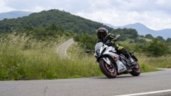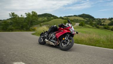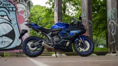 Basta guardare l'R7 per capire che in Yamaha hanno fatto una mini R6/R1. La sportiva 700 di Iwata è quella che, lato estetica ed ergonomia, meno si sposa al segmento ''sportive stradali'', con pedane alte e semi-manubri spioventi da sportiva vera. Di stradale sembra esserci poco sulle prime, ma il motore CP2 è un portento di coppia ai bassi ed è ottimo per l'utilizzo su strada, come insegnano MT-07, XSR e Tracer 7. Buone le sospensioni, abbastanza scorrevoli e regolabili, ma il comfort è limitato dal carico sui polsi. Peccato che, senza piattaforma inerziale, manca anche il quickshifter...
