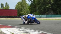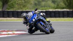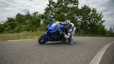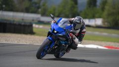 Se su strada la posizione di guida della R7 non è il massimo, in pista la situazione si ribalta. L'ergonomia della sportiva Yamaha è ideale per l'utilizzo tra i cordoli, dove ci si fionda veloci nelle curve col massimo supporto. Il motore, che tanto bene si comporta su strada, in pista risulta un po' poco pimpante agli alti: si esce fuori dalle curve velocemente ma i rettilinei passano lentamente, visto il gap di CV con le altre contendenti. Ancor più si sente la mancanza del cambio elettronico: optional esiste quello per la salita di marcia, ma una piattaforma inerziale potrebbe far fare un balzo alla piccola di Iwata e collocarla tra le migliori, anche perché lei, per caratteristiche, se la gioca con Aprilia e Kawasaki e loro sono belle dotate in fatto di elettronica...