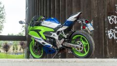 Chi si ricorda le supersportive 400 che andavano di moda negli anni ‘90 in Giappone? Piccoli gioielli di meccanica che ricalcavano le orme delle sorelle da SBK. La Ninja ZX-4RR di Kawasaki – seppur con soluzioni tecniche meno pregiate – riporta in auge quel concetto lì, con una moto che di “canonico” ha ben poco. A partire dal suo motore 4 cilindri in linea da 399 cc, che a dispetto della cubatura ridotta riesce a produrre fino 77 CV a 14.500 giri (ma può girare oltre i 15.000 giri, e i CV diventano 80 con l’airbox in pressione). Piccola cilindrata, poca coppia, solo 39 Nm, per un motore che va fatto frullare nella parte alta del contagiri, con libidine per le orecchie assicurata. Se dal punto di vista della ciclistica non si raggiungono gli standard elevati della Aprilia – il telaio è in acciaio con telaietto saldato – per quanto riguarda l’elettronica la baby Ninja offre RBW con 4 riding mode (Rider personalizzabile), connettività e la funzione lap timer, ma niente piattaforma inerziale o ABS con taratura sportiva. Se si sceglie la versione RR, la più pregiata, di serie arrivano anche il quick shifter, la regolazione del precarico per la forcella Showa SFF-BP e un mono ammortizzatore di derivazione ZX-10R completamente regolabile. A frenare i soli 188 kg in ordine di marcia ci pensano le pinze radiali a 4 pistoncini che mordono dischi da 298 mm, mentre gli pneumatici di primo equipaggiamento sono i Dunlop GPR300, con il posteriore di sezione 160, alla ricerca della massima agilità e maneggevolezza. A mettere la ciliegina sulla torta, all’incredibile gusto amarcord, ci pensa la livrea celebrativa per i 40 anni di storia della gamma Ninja, per averla in questo colore si passa da 9.690 euro a 9.890 euro. Fidatevi, saranno i migliori 200 euro mai spesi.