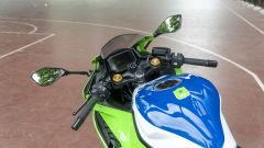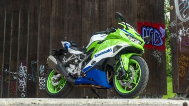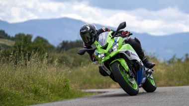 Se Honda è ''Miss Innovazione'' la Kawasaki è ''Miss Rivelazione''. Tutti i tester sono rimasti sorpresi dalle sue capacità, su strada come in pista. La sella è bassa, l'assetto è morbido, i semi-manubri sono aperti e ci si trova a proprio agio (solo chi supera i 180 cm si sentirà un po' costretto). Una vera sportiva stradale. Le sospensioni – tra le migliori del confronto – sono state una vera sorpresa: anche sull'asfalto ''guasto'' copiano bene e permettono di sentirsi sempre in pieno controllo, soprattutto il mono pluriregolabile al posteriore. Lo scotto da pagare con la Ninja ZX-4RR è la scarsità di coppia del motore: bellissimo dai 10.000 ai 15.000 giri, ma caratterizzato da una curva molto piatta e poco performante sotto gli 8.000 giri/min. Per cercare di tenere il passo delle altre moto del confronto, insomma, serve usare molto il cambio – buona in salita, qualche volta legnoso in discesa – e tenere l'ago del contagiri nel punto giusto...