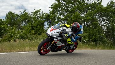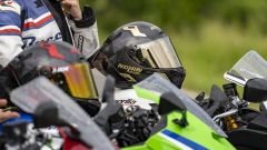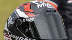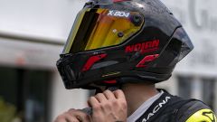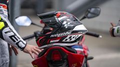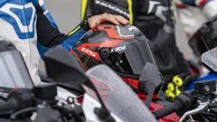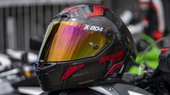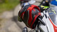 Un ringraziamento speciale lo facciamo a Nolan che ci ha fornito il suo X-804 RS Ultra Carbon, un casco perfetto per le sportive stradali e l'uso in pista. Su strada come in circuito è stato apprezzatissimo dai tester il campo visivo fornito dall'ampia visiera, così come l'ottima capacità di aerazione delle prese d'aria, ma anche l'ottima aerodinamica: perché se in pista ti accucci dietro al cupolino, nei trasferimenti stradali (per noi da Milano a Varano de' Melegari e viceversa) serve un casco capace di penetrare l'aria senza creare turbolenze o fruscii. E Nolan X-804 RS Ultra Carbon ha saputo soddisfare tutti, offrendo davvero ottime performance. Se siete curiosi di saperne di più su Nolan X-804 RS Ultra Carbon potete cliccare qui.