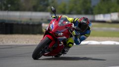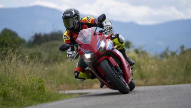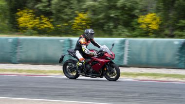 Il suo 4 cilindri in pista dà buone soddisfazioni, complice anche il quickshifter rapido e preciso, certamente tra i migliori del confronto. Ergonomia, sospensioni e freni non sono perfetti per cercare il tempo in circuito ma non per questo non ci si può divertire: le pedane sono un po' basse, le sospensioni sono morbide e i freni sono buoni senza eccellere. Con la CBR però ci si sente a casa, come solo su una Honda sa fare...