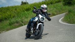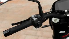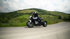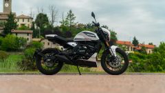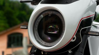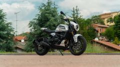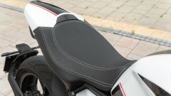 Disponibile anche in versione depotenziata a 35 kW, per la patente A2, e nelle colorazioni bianco, antracite e rosso, Morini Seiemmezzo STR attacca infatti a 6.990 euro franco concessionario. E non mancano accessori non troppo costosi per esaltare il suo spirito stradale. I miei preferiti? Il puntale lo vedete qui, fanno 119 euro: esattamente come le comode maniglie per il passeggero. Bello il porta targa alto, da 89 euro, che però le foto non ritraggono perché non installato sulla moto in prova. Ma il top è il cupolino rotondo che esalta il design “modern classic”: 99 euro ben spesi.