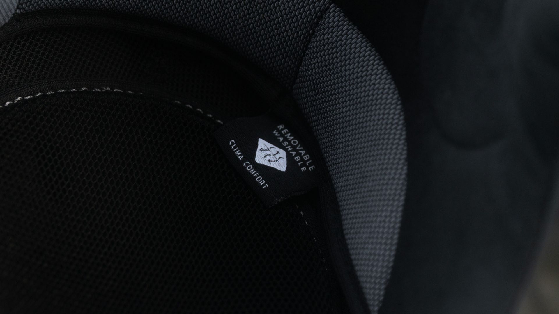 A collaborare alla distribuzione dell’aria ci sono interni in poliammide riciclata di produzione italiana, con struttura a rete aperta per favorire la traspirazione.