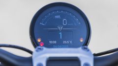 Triumph dichiara un consumo medio di 4,5 L/100 km, il che significa un’autonomia di circa 300 km con un pieno da 14 litri. Ovviamente, il dato varia in base allo stile di guida e al tipo di percorso.