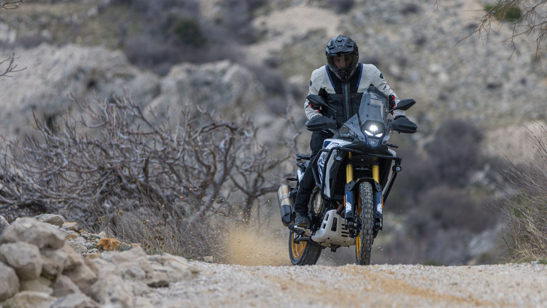 Se sul motore ci sono aspetti ancora migliorabili, la ciclistica, invece, è secondo me già di ottimo livello. A convincermi sono soprattutto le sospensioni Kayaba, tarate in maniera perfetta per l'uso bivalente della moto: nonostante la lunga escursione, si dimostrano composte, anche quando il ritmo di guida si fa più allegro, pur ovviamente mantenendo ottime capacità di assorbimento per buche e quant'altro passi al di sotto dell'accoppiata di cerchi da 21-18 pollici.