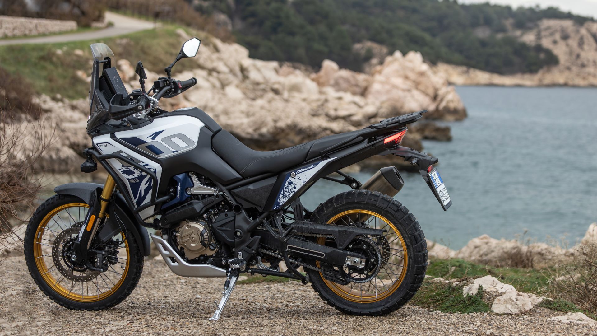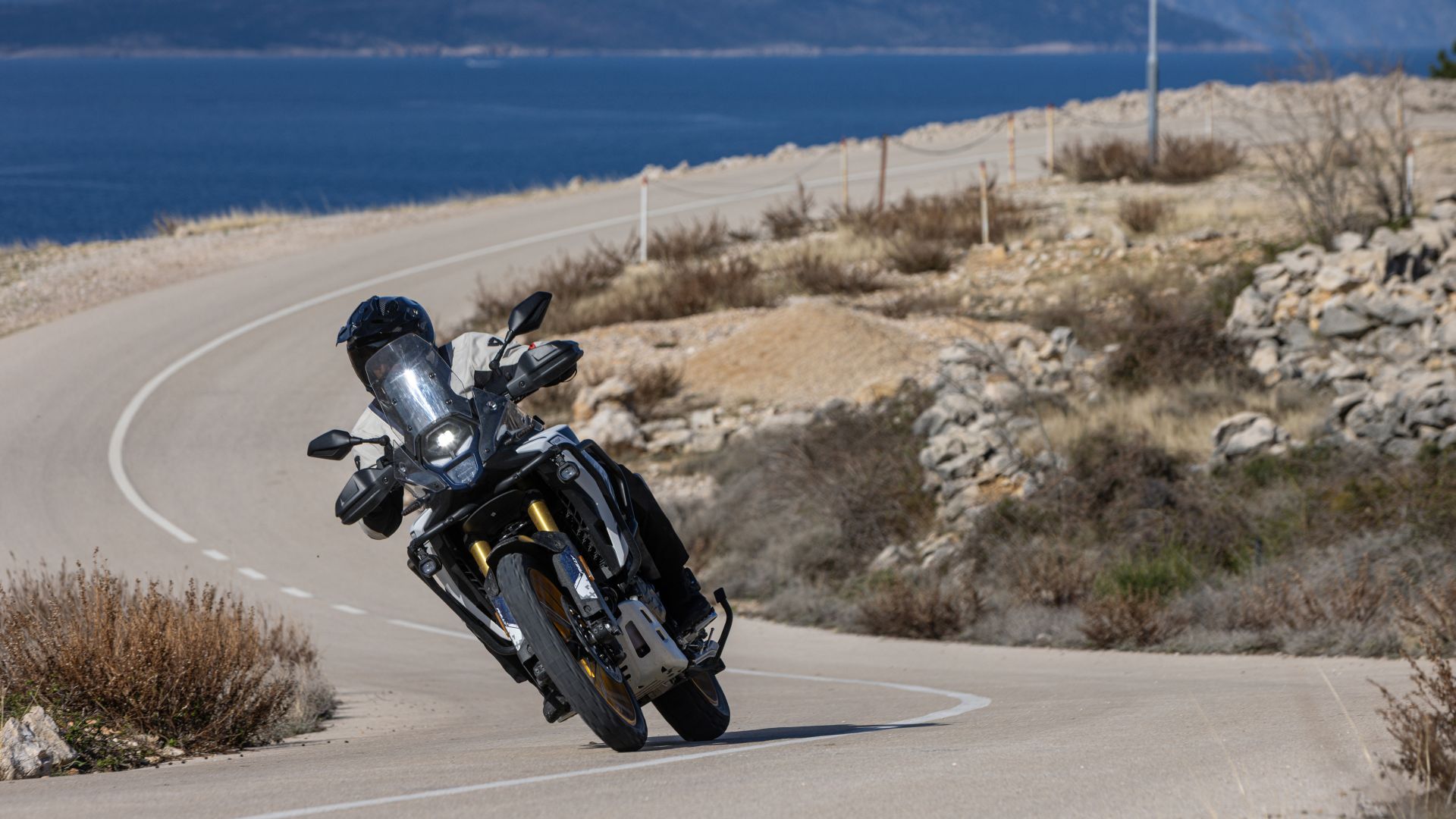Le sospensioni, anche lontano dall'asfalto, lavorano bene, assorbendo buche e pietre con una taratura corrette che consente di ottenere un buon comfort senza sacrificare la guidabilità, anche su fondi particolamente sassosi come quelli dell'isola di Krk. Il vero limite, semmai, è il peso: nei passaggi più impegnativi i chili si sentono, specialmente a serbatoio pieno. Situazione che va migliorando al diminuire dei litri presenti al suo interno.
