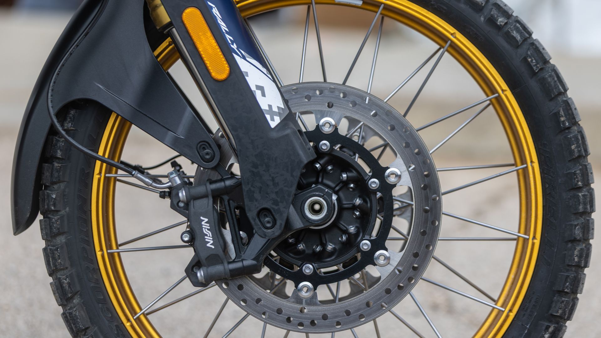 La ciclistica si affida a componenti di buon livello. Le sospensioni sono Kayaba completamente regolabili, con un’escursione di 200 mm davanti e 190 mm dietro, valori che la collocano a metà strada tra una maxi enduro stradale e una moto più orientata al fuoristrada. Il mono lavora tramite leveraggio progressivo, finezza non da poco considerando il prezzo come lo è anche la presenza di un ammortizzatore di sterzo rotativo regolabile, mentre l’impianto frenante porta la firma Nissin, con ABS Bosch disinseribile anche separatamente.