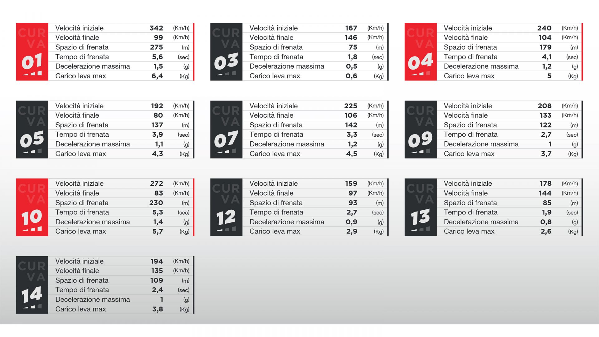 - Le tre curve più impegnative: curva 1, curva 10 e curva 4