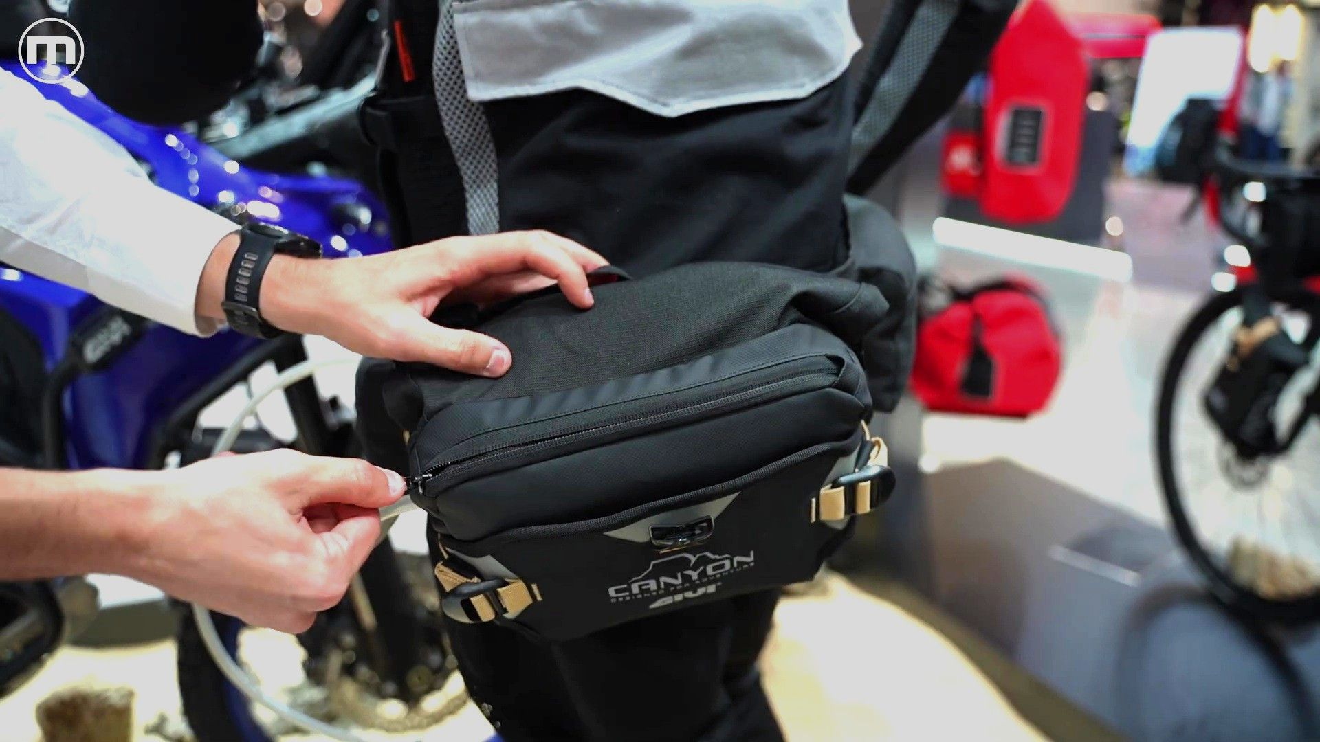La filosofia Canyon si estende anche allo zaino GRT731: 12 litri di capacità, tre tasche ben distinte e un attacco a quattro punti per mantenerlo stabile anche in sella.