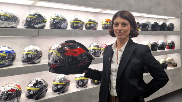 A EICMA, nello stand Scorpion Sports Italia, ci accoglie Arianna Falsone – responsabile vendite e voce ufficiale di una collezione che sa di novità vere. Jet, integrali, fibra e carbonio: ce n’è per tutti i gusti (e tutte le teste).