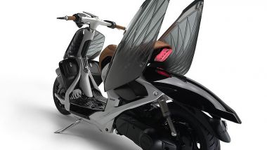 Ha motore da scooter, piega come una moto ma di ruote ne ha tre. Un oggetto misterioso si aggira per le aree esterne del Motor Show di Bologna, atterrato direttamente dal pianeta Pontedera.