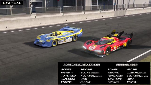 Confronto tra Ferrari 499P e Porsche 917/30 Spyder su Le Mans in versione simulata. Guarda il video e scopri chi vince