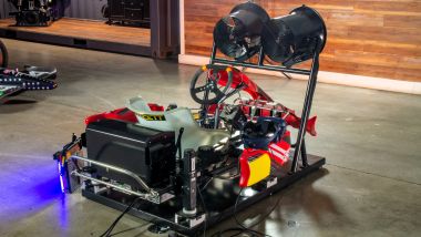 In questo senso, il CXC Simulations Full Motion Kart Simulator si distingue per una soluzione ancora più immersiva: aguzzate la vista e noterete appoggiato sulla carena laterale destra un visore per la realtà virtuale.